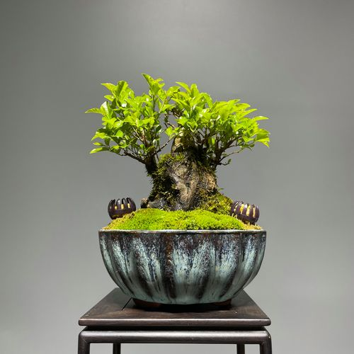 雀梅的美自带岁月沉淀感,灰褐色枝干苍劲有力,自然扭曲中藏着章法,嫩绿色叶片小巧饱满,春日绽放米白色小花,香气淡雅,秋日结出鲜红小果,相映成趣。搭配紫砂或素陶花盆,中式古典与新中式风格完美契合。它适配大连海洋性气候,耐寒耐阴,办公室明亮角落或家居窗台就能生长,叶片四季常青,尽显生机活力。